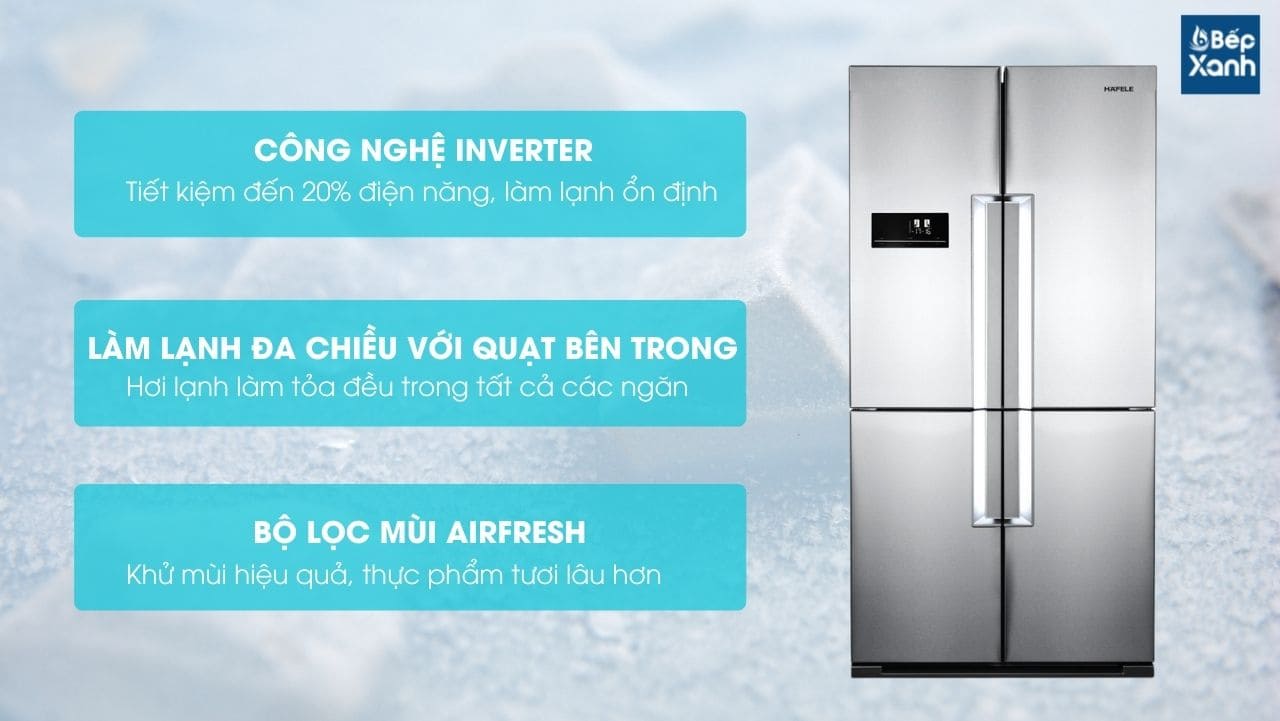 Tủ lạnh 4 ngăn Hafele HF-SBSIB 539.16.230 được bảo hành chính hãng 3 năm tại nhà.