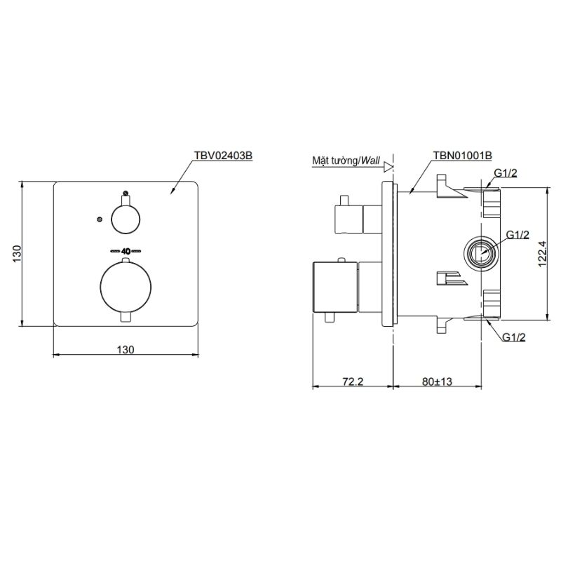 Kích thước Van điều chỉnh nhiệt độ TOTO TBV02403B/TBN01001B