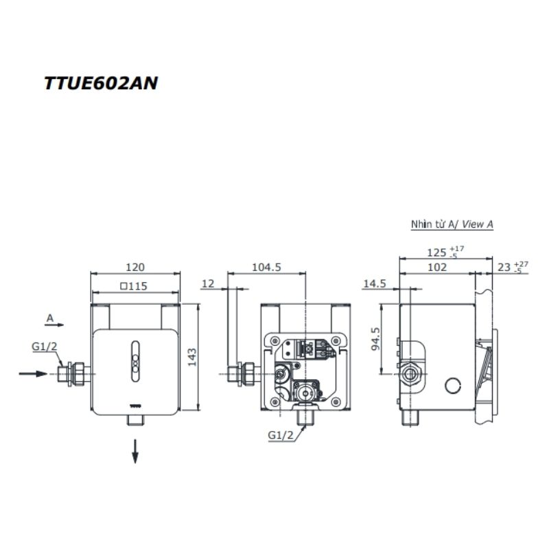 Kích thước Van cảm ứng tiểu nam Toto TTUE602AN