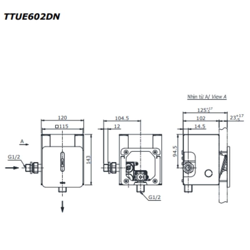 Kích thước Van cảm ứng tiểu nam Toto TTUE602DN