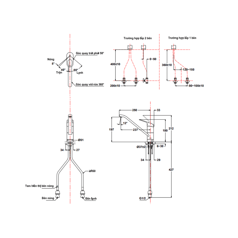 Kích thước sản phẩm vòi rửa chén TOTO TKGG31E: