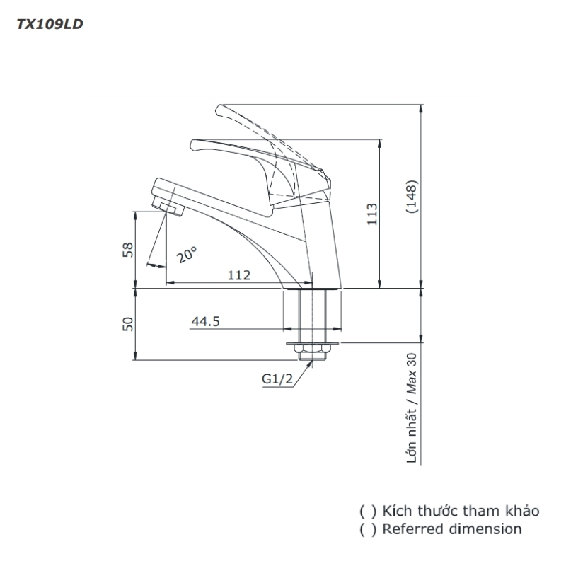 Kích thước sản phẩm vòi chậu rửa mặt TOTO TX109LD: