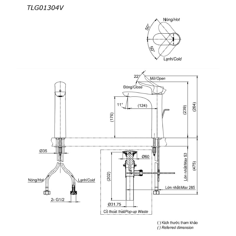 Kích thước sản phẩm vòi chậu TOTO TLG01304V: