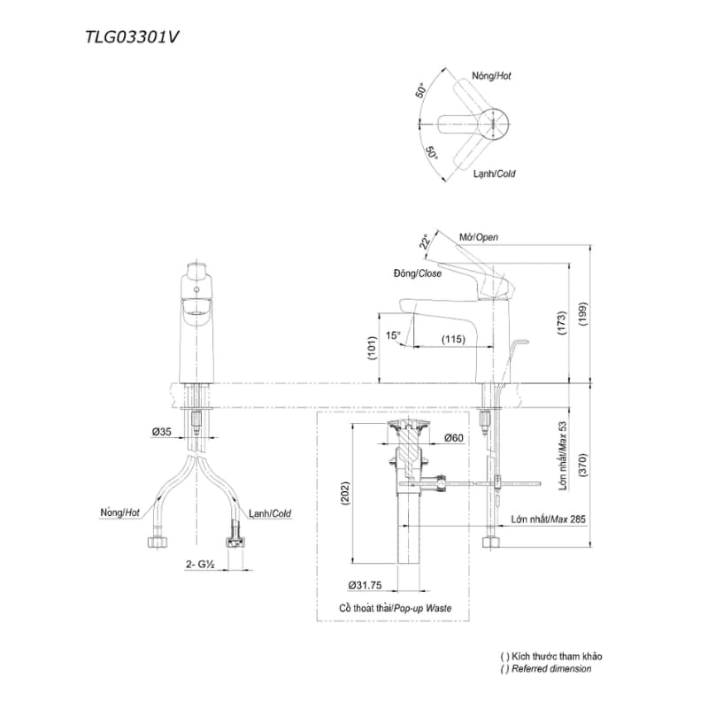 Kích thước sản phẩm vòi chậu TOTO TLG03301V: