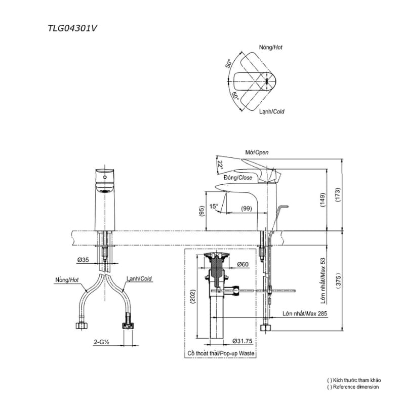 Kích thước sản phẩm vòi chậu TOTO TLG04301V: