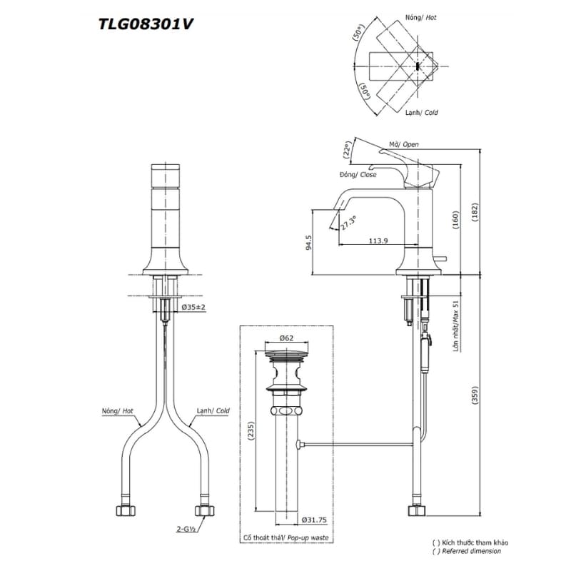Kích thước sản phẩm vòi chậu TOTO TLG08301V: