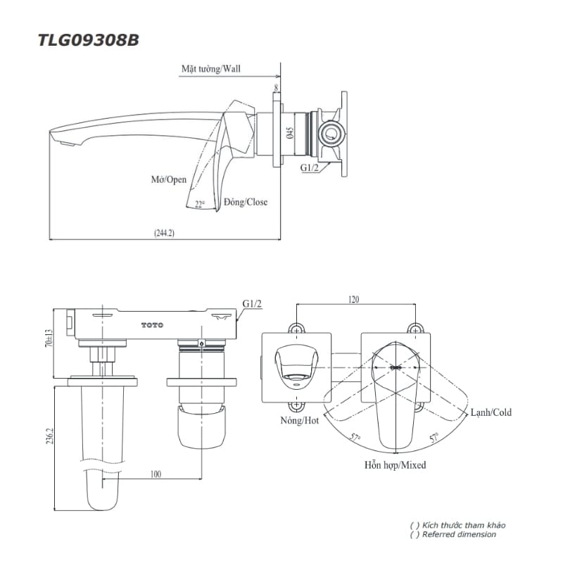 Chiều dài vòi lavabo TOTO từ tâm xả nước đến tường là 244.2 mm. Nhờ đó, vòi có khả năng lấy nước ở vị trí xa, không bị bắn nước lên tường và giúp bạn có không gian rửa mặt, rửa tay thoải mái hơn.