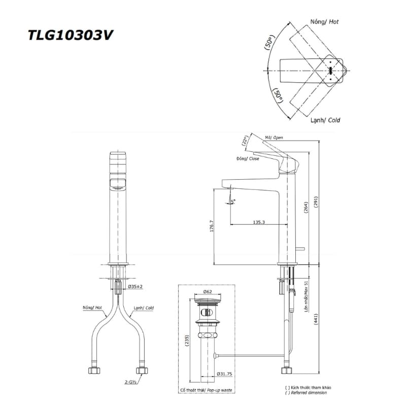 Kích thước sản phẩm vòi chậu TOTO TLG10303V: