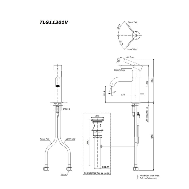 Kích thước sản phẩm vòi chậu TOTO TLG11301V: