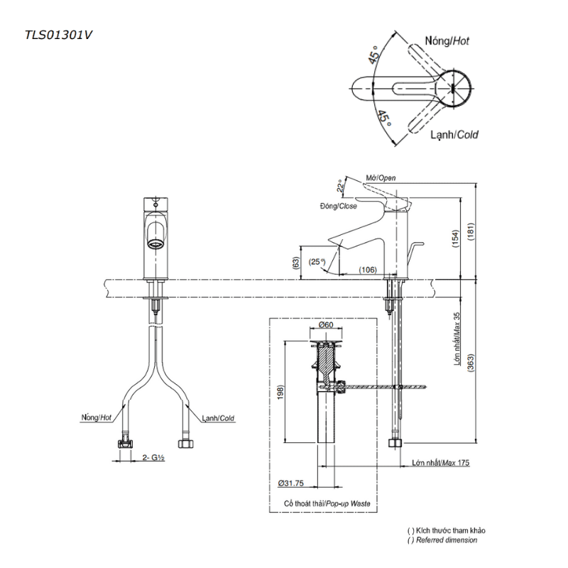 Kích thước sản phẩm vòi chậu TOTO TLS01301V:
