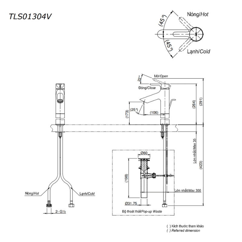 Kích thước sản phẩm vòi chậu TOTO TLS01304V: