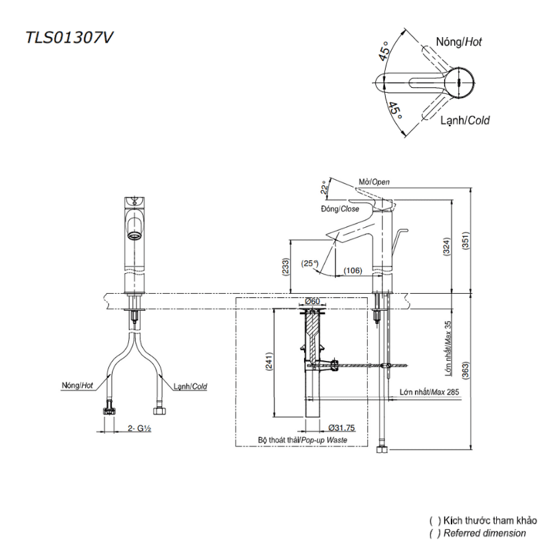 Kích thước sản phẩm vòi chậu TOTO TLS01307V: