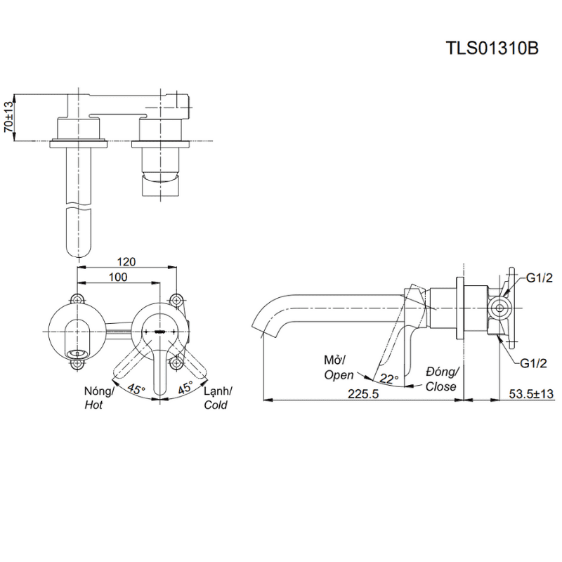 Tính từ tâm xả nước đến tường, vòi TOTO TLS01310B có chiều dài 22.5cm. Nhờ vậy khi xả nước thì nước sẽ được hứng trọn trong lavabo mà không bị tràn ra ngoài, đảm bảo vấn đề vệ sinh hơn.
