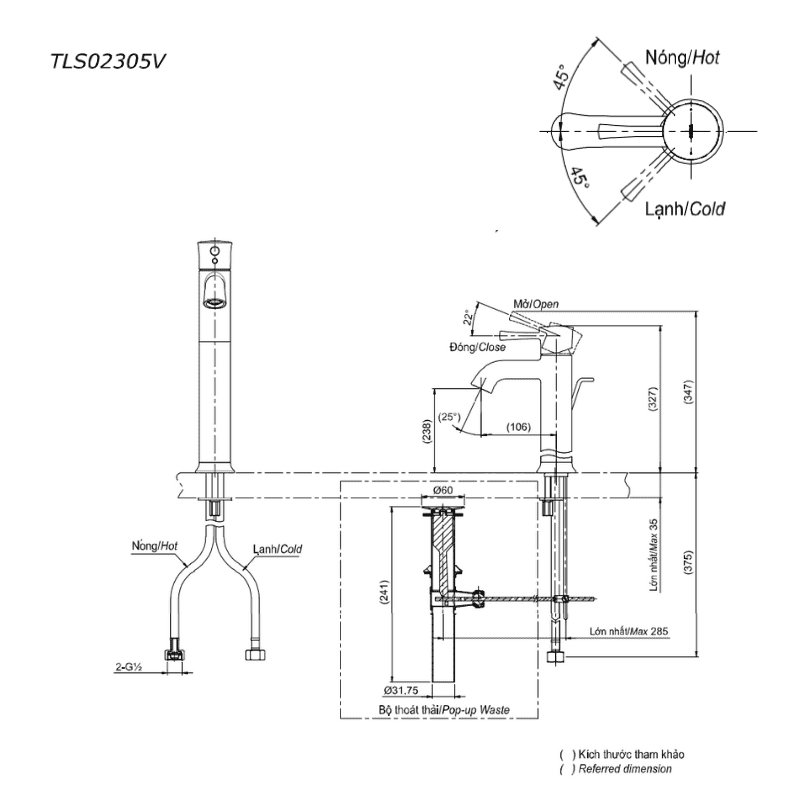 Kích thước sản phẩm vòi chậu TOTO TLS02305V: