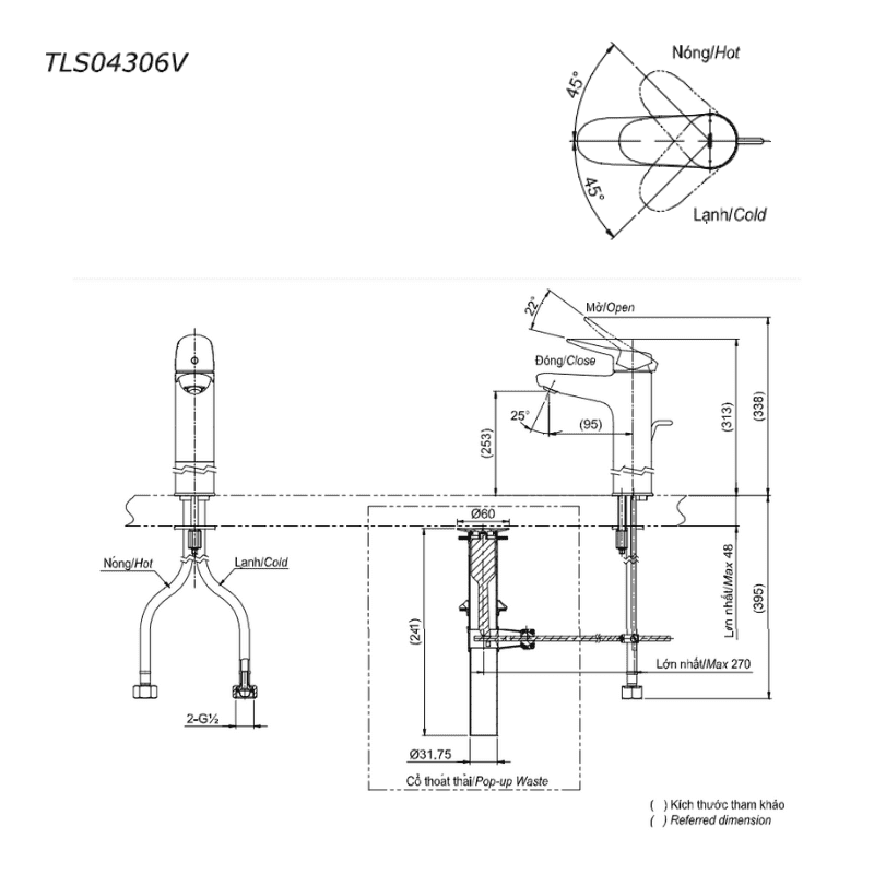 Kích thước sản phẩm vòi chậu TOTO TLS04306V: