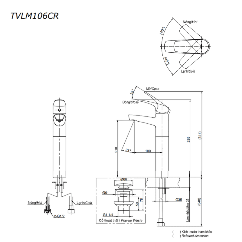Kích thước sản phẩm vòi chậu TOTO TVLM106CR: