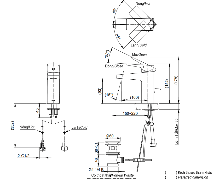 Áp lực nước: 0.05MPa ~ 0.75MPa