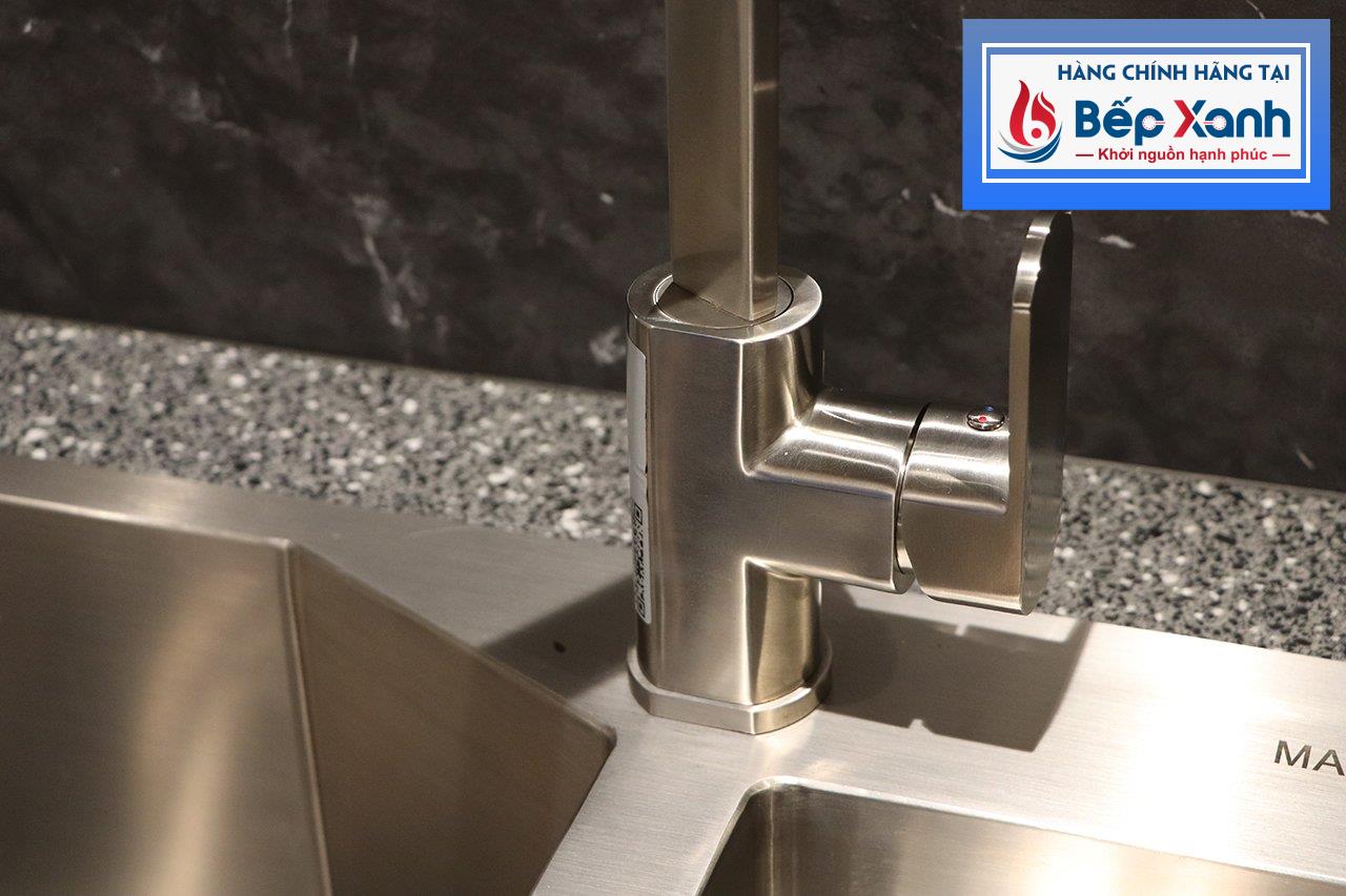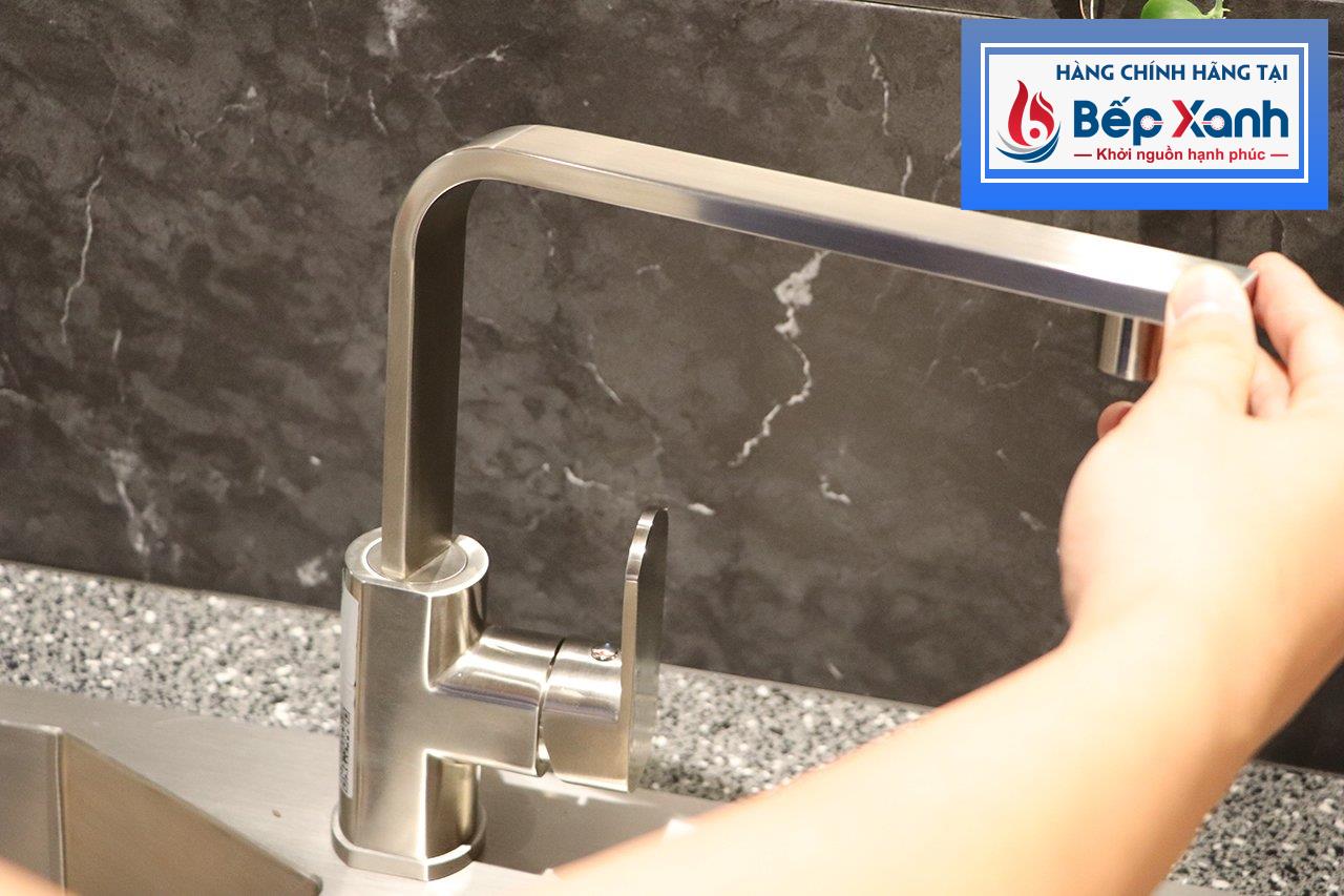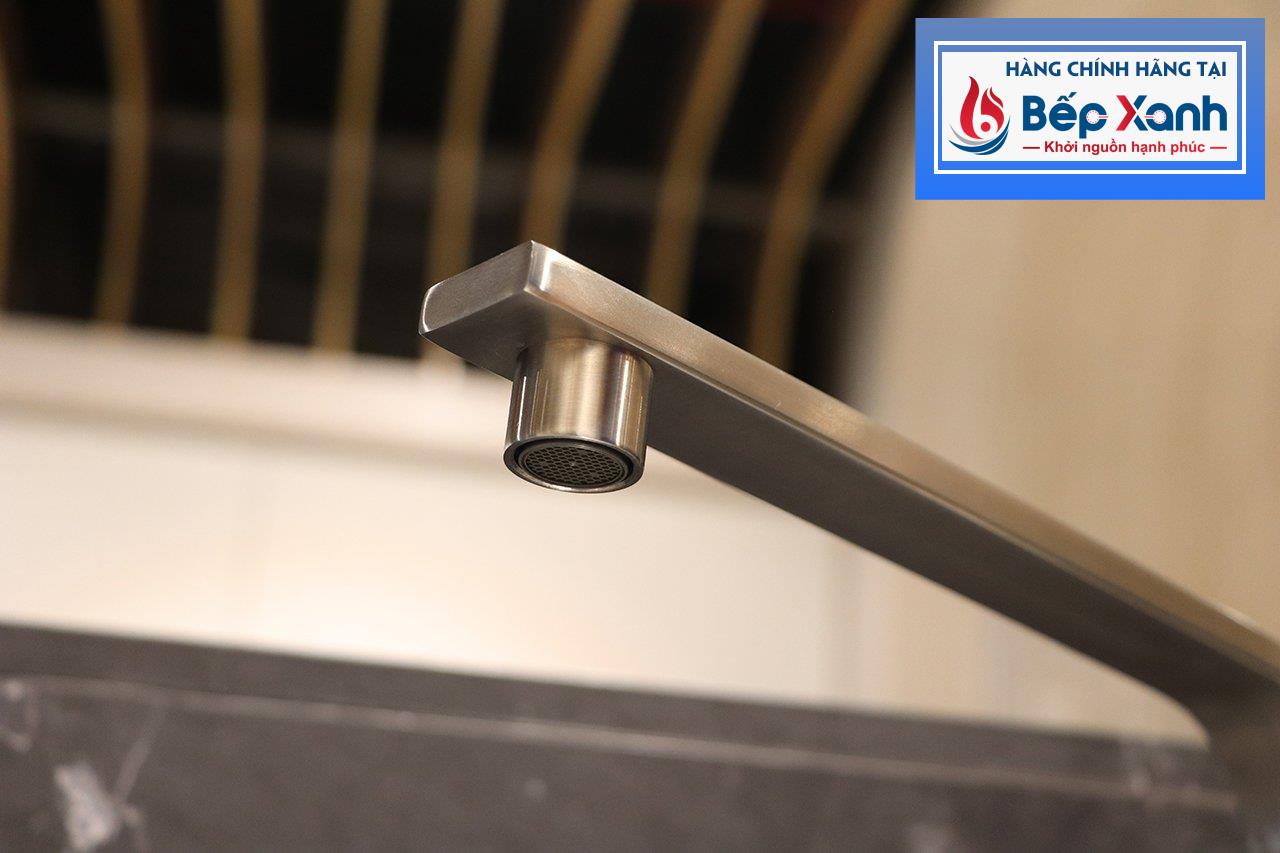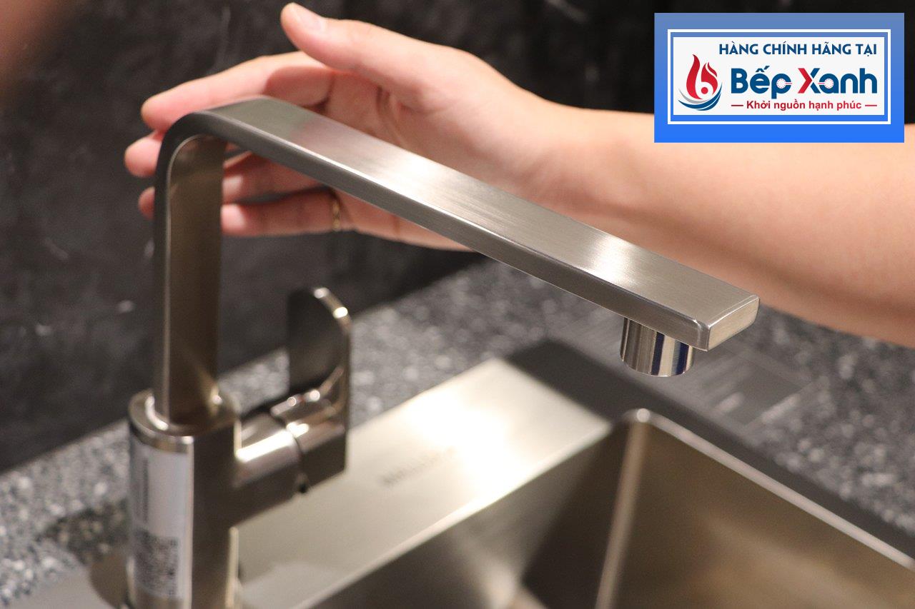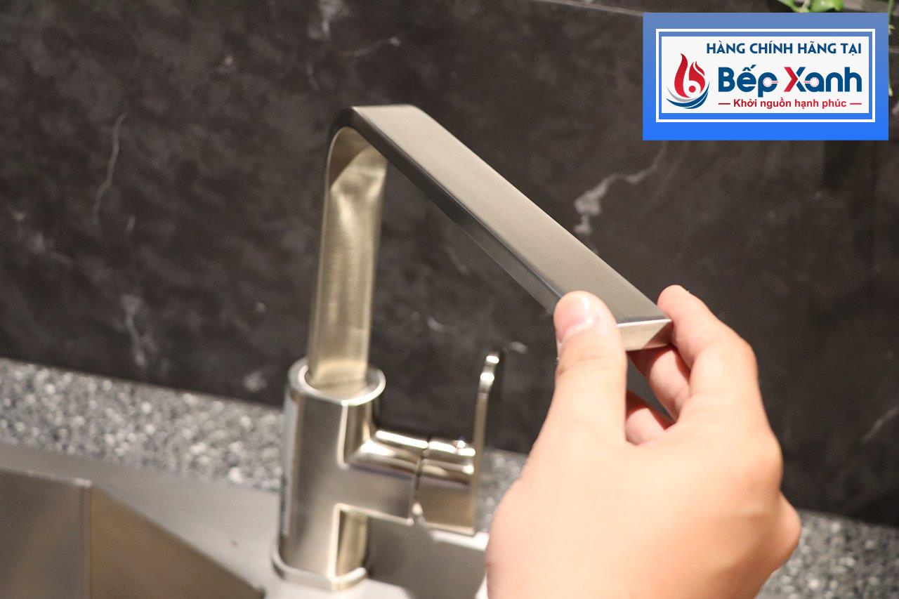 Thân inox hạn chế bám bẩn, dễ vệ sinh:Nhờ thiết kế sáng bóng và trơn mượt, các bụi bẩn trong quá trình rửa thức ăn, sơ chế trước khi nấu sẽ ít bị bám lại trên thành vòi. Do đó việc vệ sinh vòi rửa sau khi chế biến rất tiện lợi, bạn chỉ cần dùng khăn sạch lau nhẹ là vòi lại sáng bóng như trước.