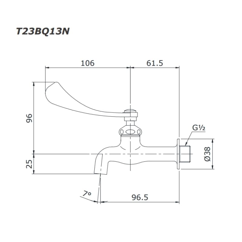 Kích thước sản phẩm vòi nước lạnh TOTO T23BQ13N: