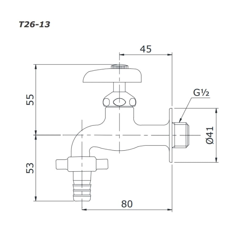 Kích thước sản phẩm vòi nước lạnh TOTO T26-13: