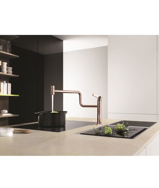 Vòi chậu rửa chén Rose thương hiệu DUDOFF London với 2 nguồn nước nóng lạnh tiện lợi cho người sử dụng. Thiết kế tinh tế và sang trọng mang đẳng cấp của một sản phẩm đỉnh cao. Vòi được mạ vàng hồng theo công nghệ hiện đại giúp cho sản phẩm có độ bóng sáng hoàn hảo, màu hồng độc đáo tạo nên vẻ hoàn mỹ và tinh tế cho gian bếp gia đình bạn. Vòi xoay kéo đa chiều dễ dàng thao tác trong các trường hợp cần rửa chén, rửa rau củ, trái cây…