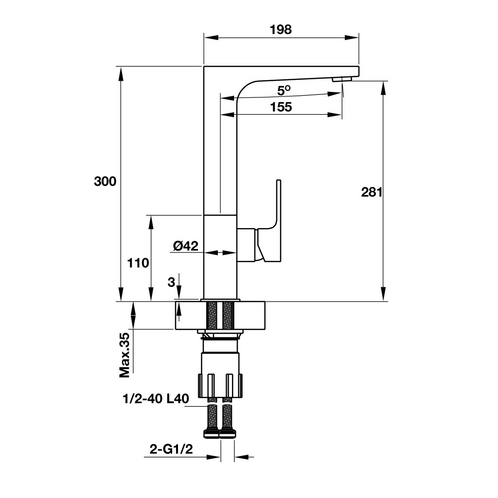 Hafele 570.51.030 là một trong những mẫu vòi bếp có kết cấu chắc chắn và vững chãi. Thanh trên thiết kế dài theo dạng góc vuông, uốn cong nhẹ nhàng ở phần kết nối với thân, còn thân vòi có dạng hình trụ đảm bảo được tính cứng cáp cho tổng thể.