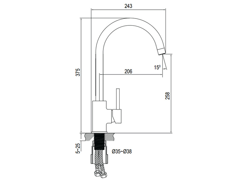 - Chiều dài dây cấp: 350mm linh hoạt với đường kinh zen 15mm