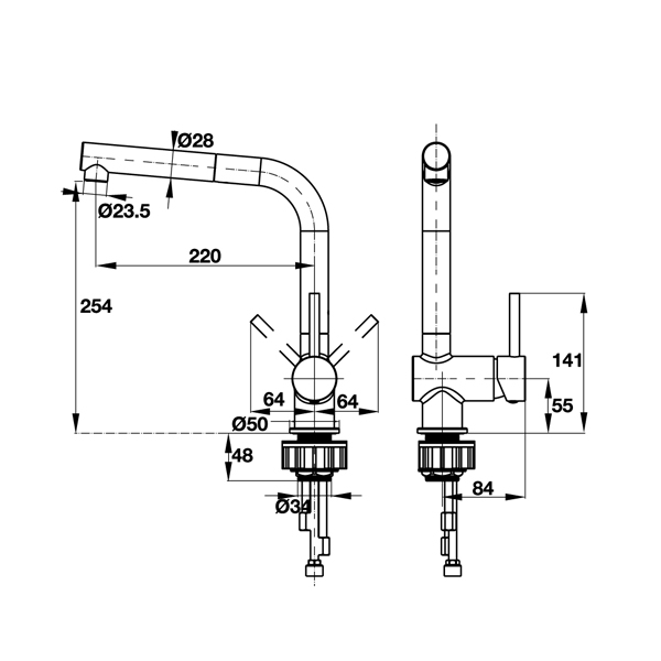 - Vòi hai đường nước nóng/lạnh