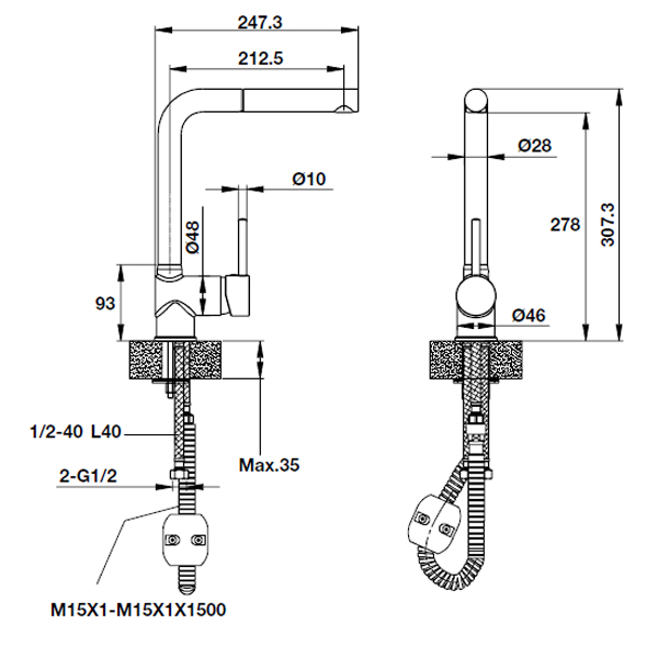 - Thiết kế sang trọng: Với kiểu dáng thiết kế chữ L được bo nhẹ góc tạo sự mềm mại, tinh tế kết hợp cùng vỏ ngoài màu xám sang trọng thì vòi rửa chén Hafele HT-G280 Silver 570.51.580 không còn đơn thuần chỉ là vòi rửa chén nữa mà còn như một vật dụng trang trí mang đến vẻ hiện đại, tính thẩm mỹ cao cho không gian bếp của bạn. Các thông số kích thước của vòi được được nghiên cứu và tính toán kỹ lưỡng, đảm bảo sao cho vừa đẹp mắt vừa phục vụ cho người sử dụng có thể sử dụng dễ dàng nhất. Vòi rửa chén Hafele có kích thước nhỏ gọn nên phù hợp lắp đặt được với nhiều loại bồn rửa và nhiều không gian nhà bếp khác nhau, góp phần làm nổi bật vẻ đẹp không gian nhà bếp của bạn.