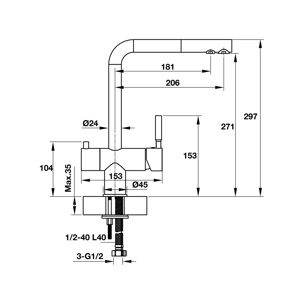 + Vòi bếp Hafele HT19-CH2P271 570.51.060 có những đặc tính sau: