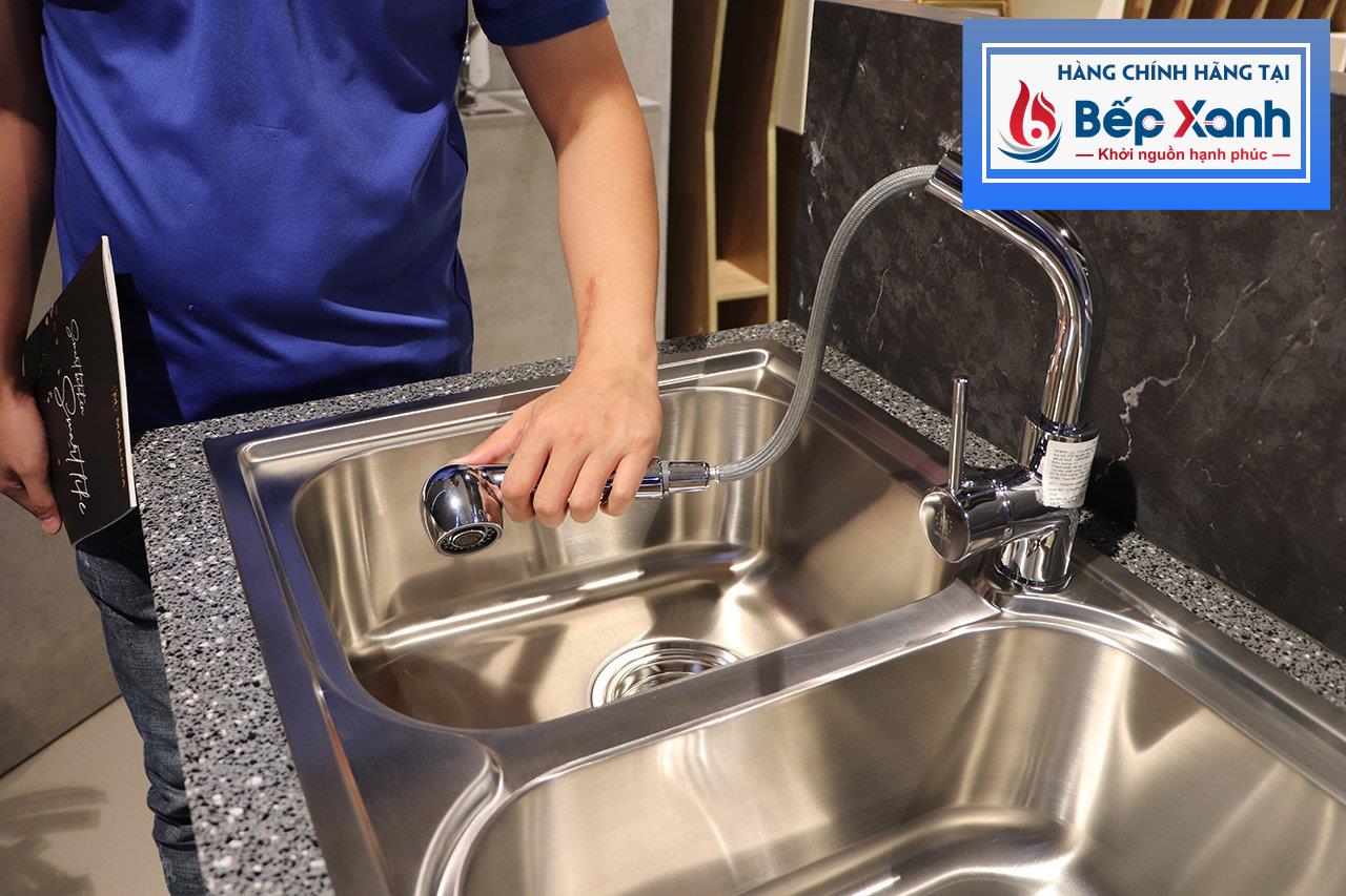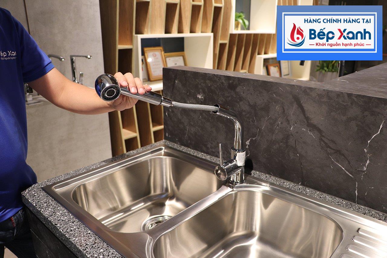 Vòi rửa chén nóng lạnh Malloca K119N9 / Đồng thau mạ chrome, có dây rút
