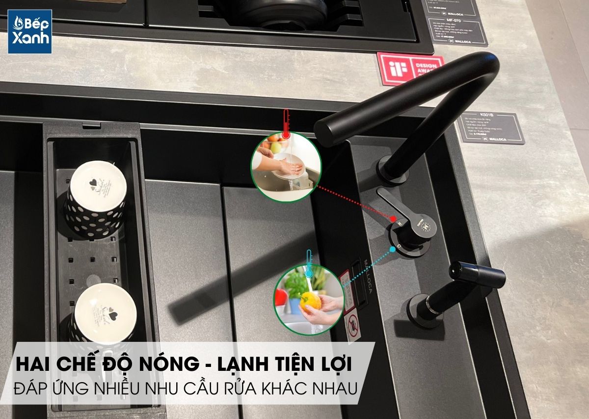 Vòi rửa chén Malloca K501B còn được tối ưu trong quá trình sử dụng nhờ 2 cơ chế nóng - lạnh. Đặc điểm này giúp người dùng có thể sử dụng nước với nhiều nhu cầu khác nhau. Đặc biệt khi vào mùa lạnh, người dùng cũng không còn lo lắng đôi bàn tay của mình bị buốt khi dùng.