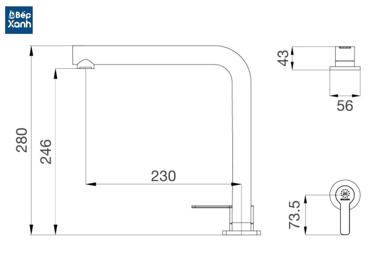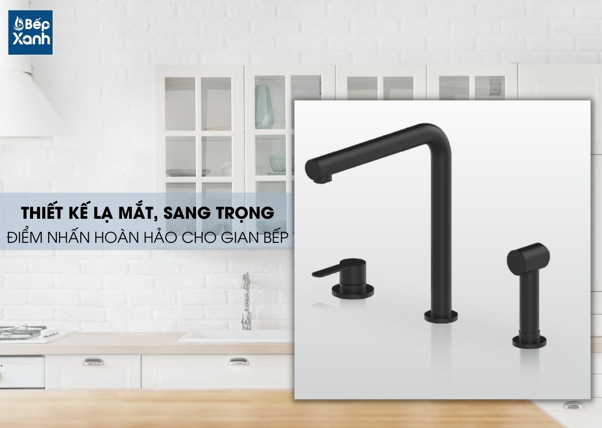 Một điểm đặc biệt trong thiết kế vòi rửa chén K501B của hãng Malloca chính là phần cần gạt. Thay vì được gắn trực tiếp dưới thân vòi như thông thường thì sản phẩm này lại được tách riêng gắn vào chậu. Điều này khiến cho sản phẩm có sự phá cách độc đáo, làm nổi bật lên tính hiện đại cho tổng thể vòi chậu nhà bạn.