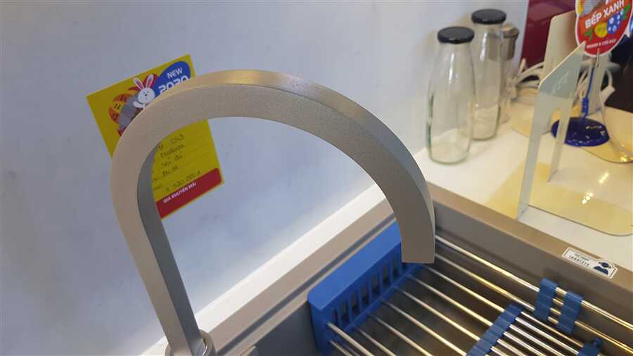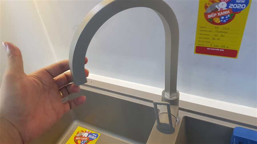 Cổ vòi có thể xoay được 360 độ, thuận tiện lấy nước ở nhiều tư thế khác nhau. Việc xoay được 360 độ giúp bạn dễ dàng lấy nước ở cả 2 hộc chậu.