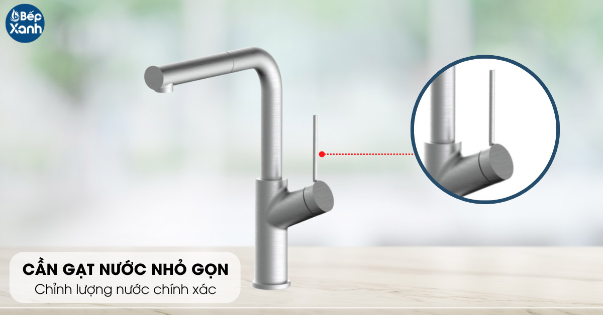 Vòi HMH.F400420NB sở hữu cần gạt thiết kế dạng que nhỏ gọn, nằm bên phải của vòi, thuận tiện cho việc thao tác đóng/mở nước. Cần gạt có khả năng xoay rất linh hoạt theo nhiều hướng khác nhau, nhờ đó bạn có thể điều chỉnh chính xác nguồn nước nóng/lạnh và mức nước như ý muốn.