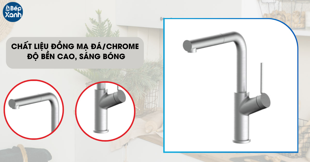 Vòi rửa bát này được thương hiệu Bosch làm bằng chất liệu đồng thau mạ Chrome nên vòi HMH.F400420NB không chỉ mang lại vẻ đẹp sang trọng mà còn đảm bảo độ bền và chống ăn mòn hiệu quả. Việc sử dụng chất liệu này giúp sản phẩm chống lại tác động của các khoáng chất có trong nước như Magie và Canxi, ngăn chặn quá trình ăn mòn và bảo vệ vòi rửa chén khỏi sự hao mòn do điều kiện môi trường. Đây thực sự là một điểm khác biệt và một ưu điểm lớn của vòi rửa chén HMH.F400420NB so với các sản phẩm tương tự trên thị trường.