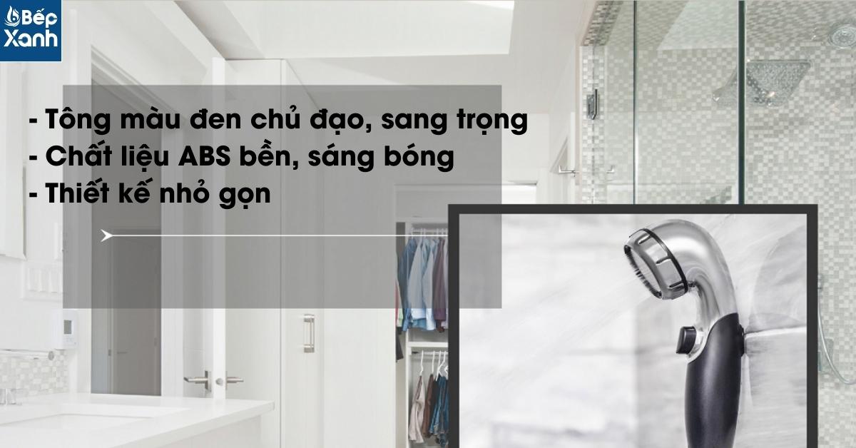 Thiết bị lọc nước vòi sen tắm Cleansui ES301 với tông màu đen chủ đạo mang lại sự hiện đại, sang trọng trong không gian tắm của bạn. Làm từ chất liệu nhựa ABS bền bỉ, sáng bóng, dễ dàng vệ sinh.