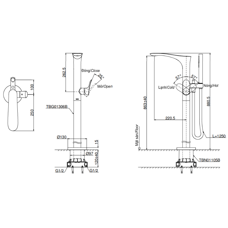 Thông số kỹ thuật của vòi xả bồn TOTO TBG01306B/TBN01105B: