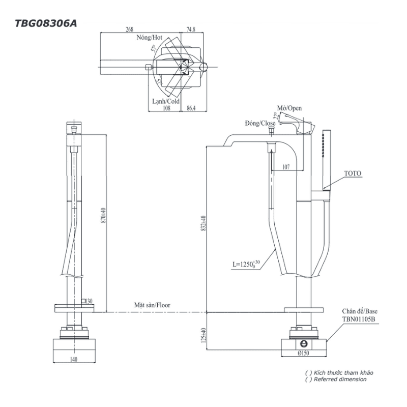 Đánh giá sản phẩm: Vòi Xả Bồn Đặt Sàn ToTo TBG08306A/TBN01105B