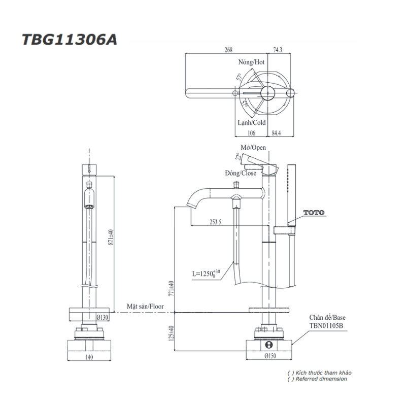 Thông số kỹ thuật của vòi xả bồn đặt sàn ToTo TBG11306A/TBN01105B: