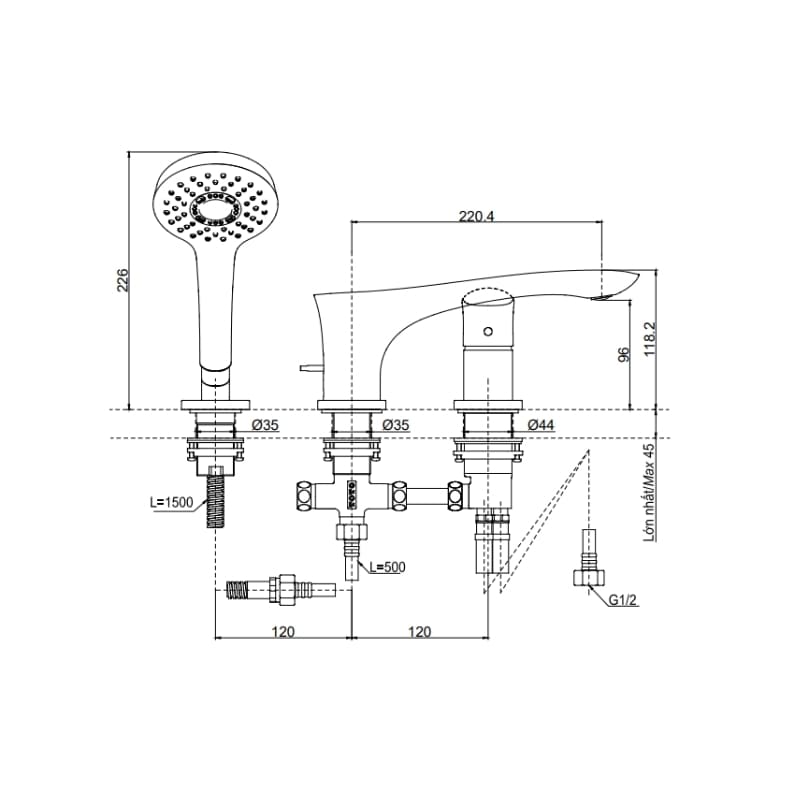 Vòi gồm sen tắm, cần gạt nước và vòi xả