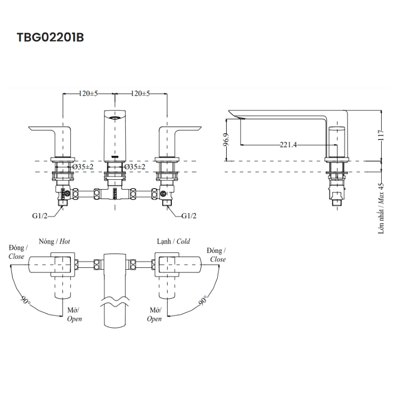Hoàn thiện tốt, ngăn dẫn nhiệt độ trên tay gạt nước đảm bảo an toàn khi sử dụng nước nóng.