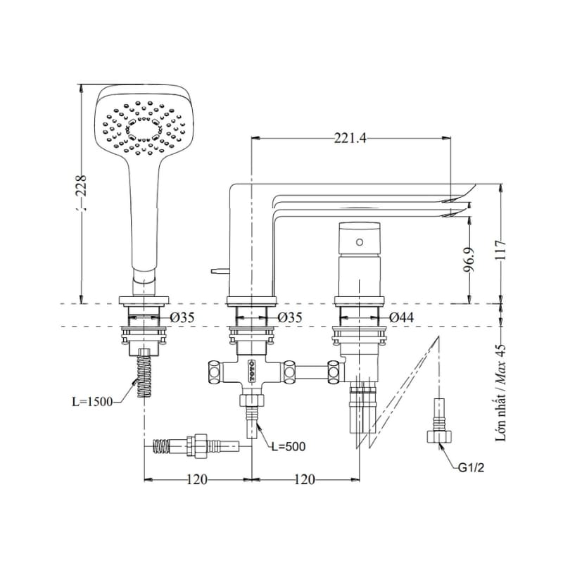 Vòi TBG02305B gắn bệ đá bao gồm 3 lỗ: sen tắm, vòi xả nước và tay gạt. Bình thường, bạn có thể chỉnh tay gạt để chọn nguồn nước nóng hoặc lạnh để sử dụng, nước sẽ được xả ra thông qua vòi ở giữa vào bồn tắm. Khi cần sử dụng sen tắm, bạn chỉ cần nhấc nhẹ sen ở bìa rất tiện lợi. Nhìn chung, vòi xả bồn tắm TBG02305B đáp ứng tốt nhu cầu sử dụng đa dạng cho người dùng.