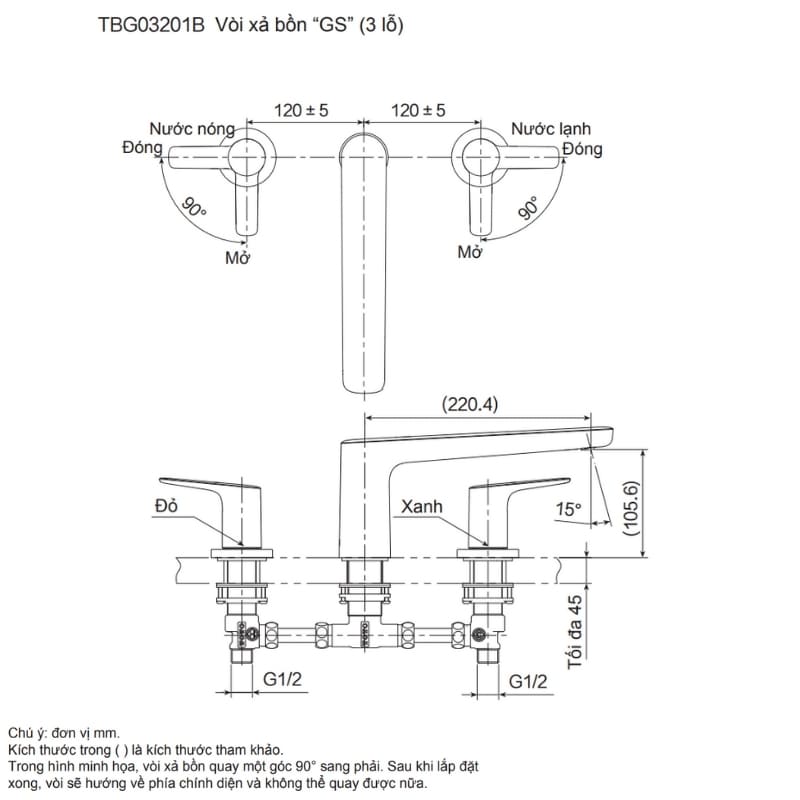 Kích thước sản phẩm vòi bồn tắm TOTO TBG03201B: