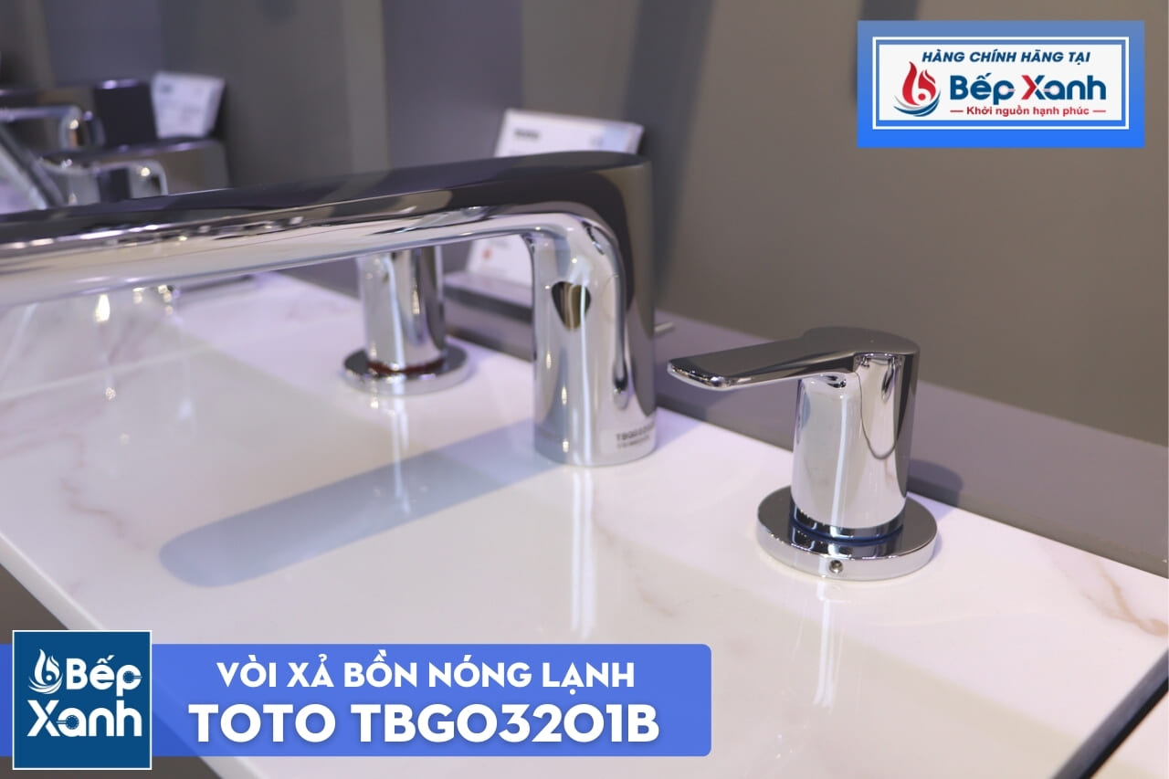 Vòi xả bồn gắn bệ đá TOTO TBG03201B thiết kế 3 lỗ với 2 tay gạt nước và 1 vòi xả, có thể lắp ở đầu, cuối hoặc bên phải, bên trái bồn tắm để xả nước. Nhờ kiểu dáng hiện đại và tổng thể gọn gàng, đây là mẫu vòi được sử dụng khá phổ biến trong phòng tắm của nhiều gia đình, khách sạn,...