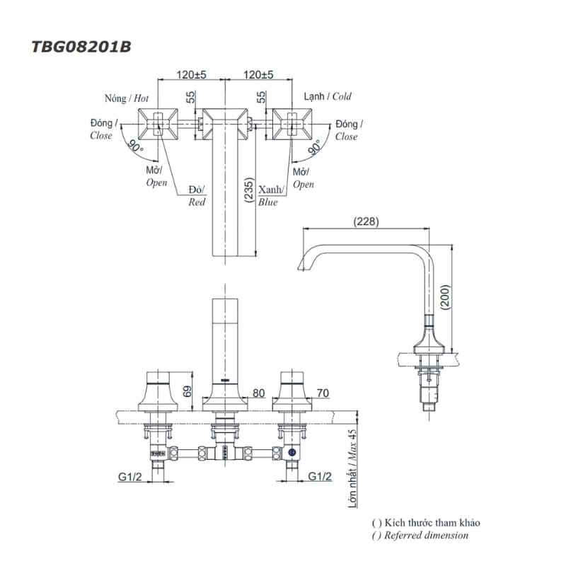 Kích thước sản phẩm vòi bồn tắm TOTO TBG08201B: