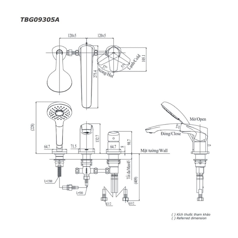 Kích thước sản phẩm vòi bồn tắm TOTO TBG09305A: