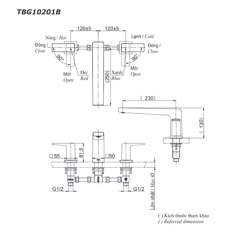 Hoàn thiện tốt, ngăn dẫn nhiệt độ trên tay gạt nước đảm bảo an toàn khi sử dụng nước nóng.