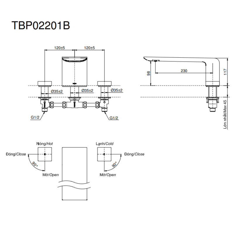 Hoàn thiện tốt, ngăn dẫn nhiệt độ trên tay gạt nước đảm bảo an toàn khi sử dụng nước nóng.