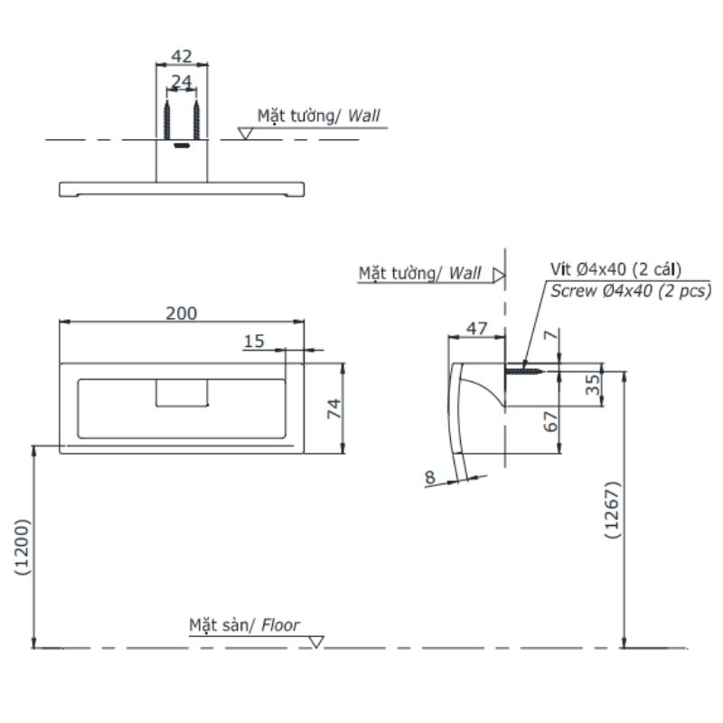 Kích thước: 200 x 47 x 74 mmChất liệu: Kẽm mạ Niken-Crom